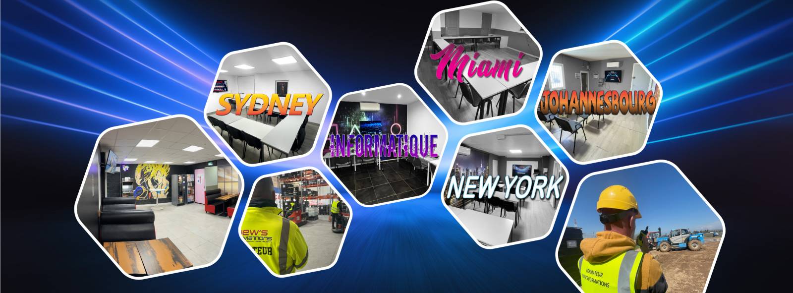 Chaque salle, chaque plateau technique de New’s Formations Miramas a été imaginé pour recréer fidèlement les réalités du terrain : zones logistiques, chantiers, engins de levage, espaces de simulation incendie ou d’intervention d’urgence.